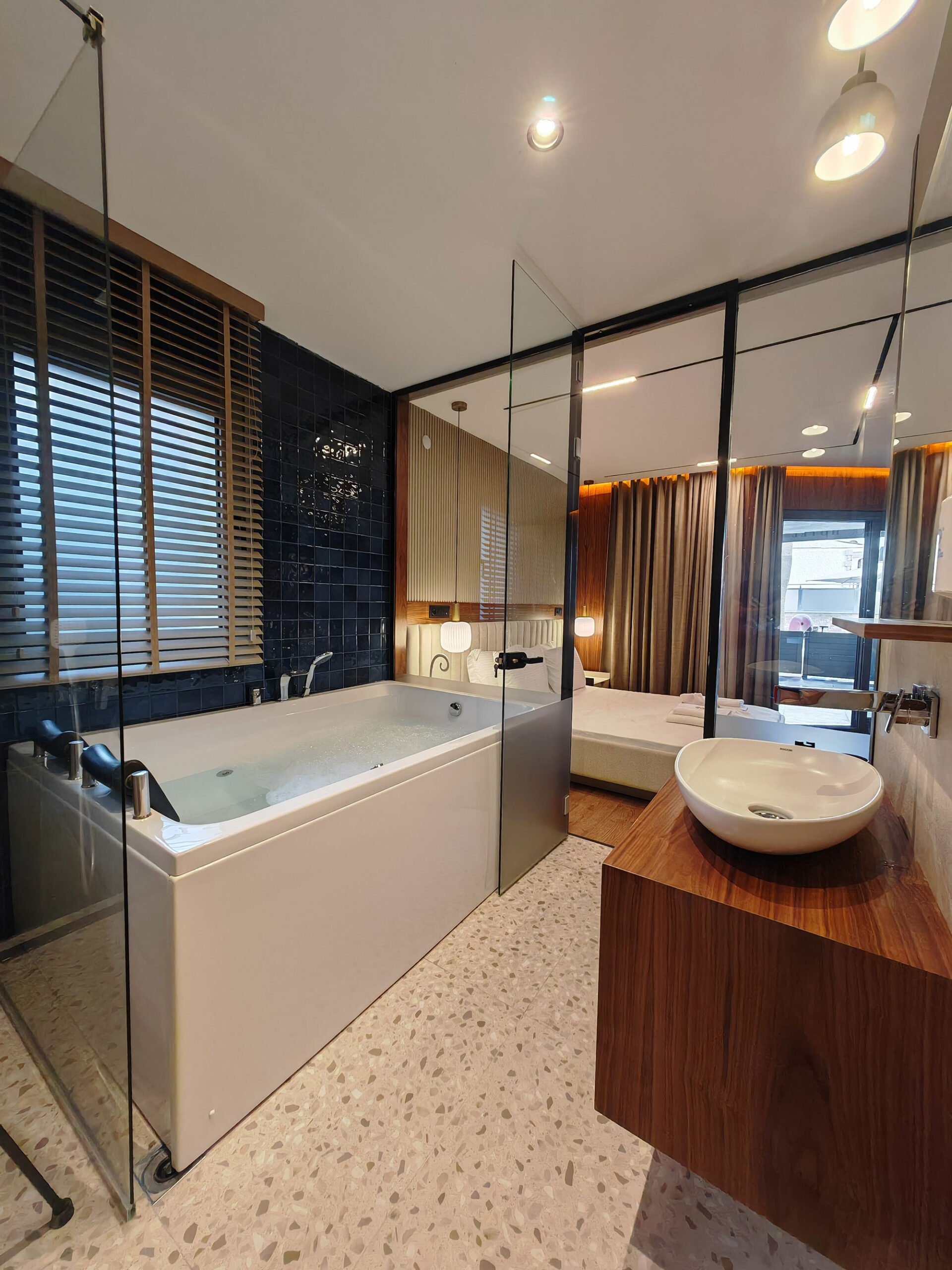 Geniş terasınızda bir jakuzi, şehirden uzakta ama tamamen size ait bir an. Sessizliği dinleyin, suyun buharında gevşeyin. Gün, tam da burada hafifliyor. Kızıl gökyüzünde, an sizin, zaman duruyor.
